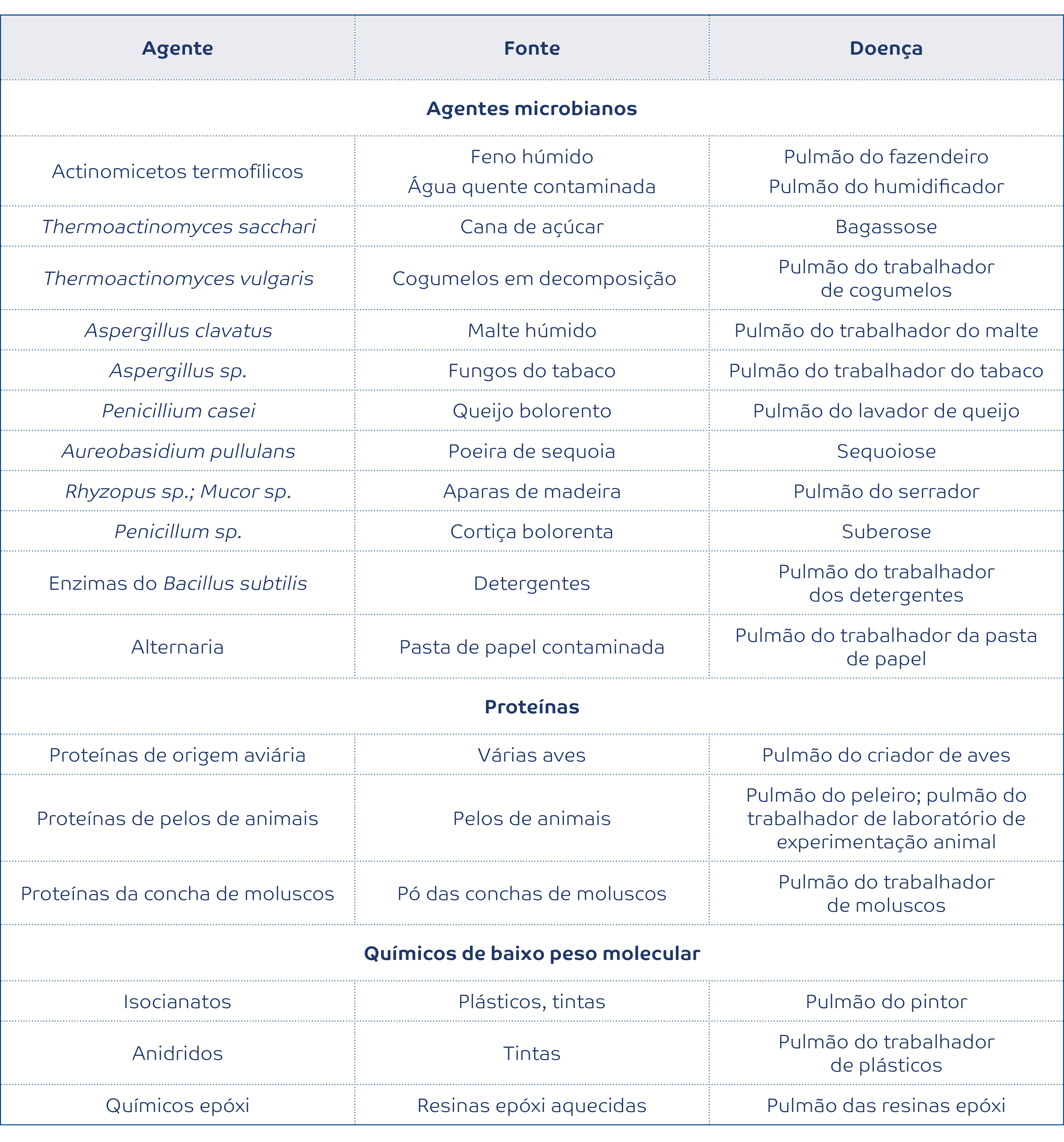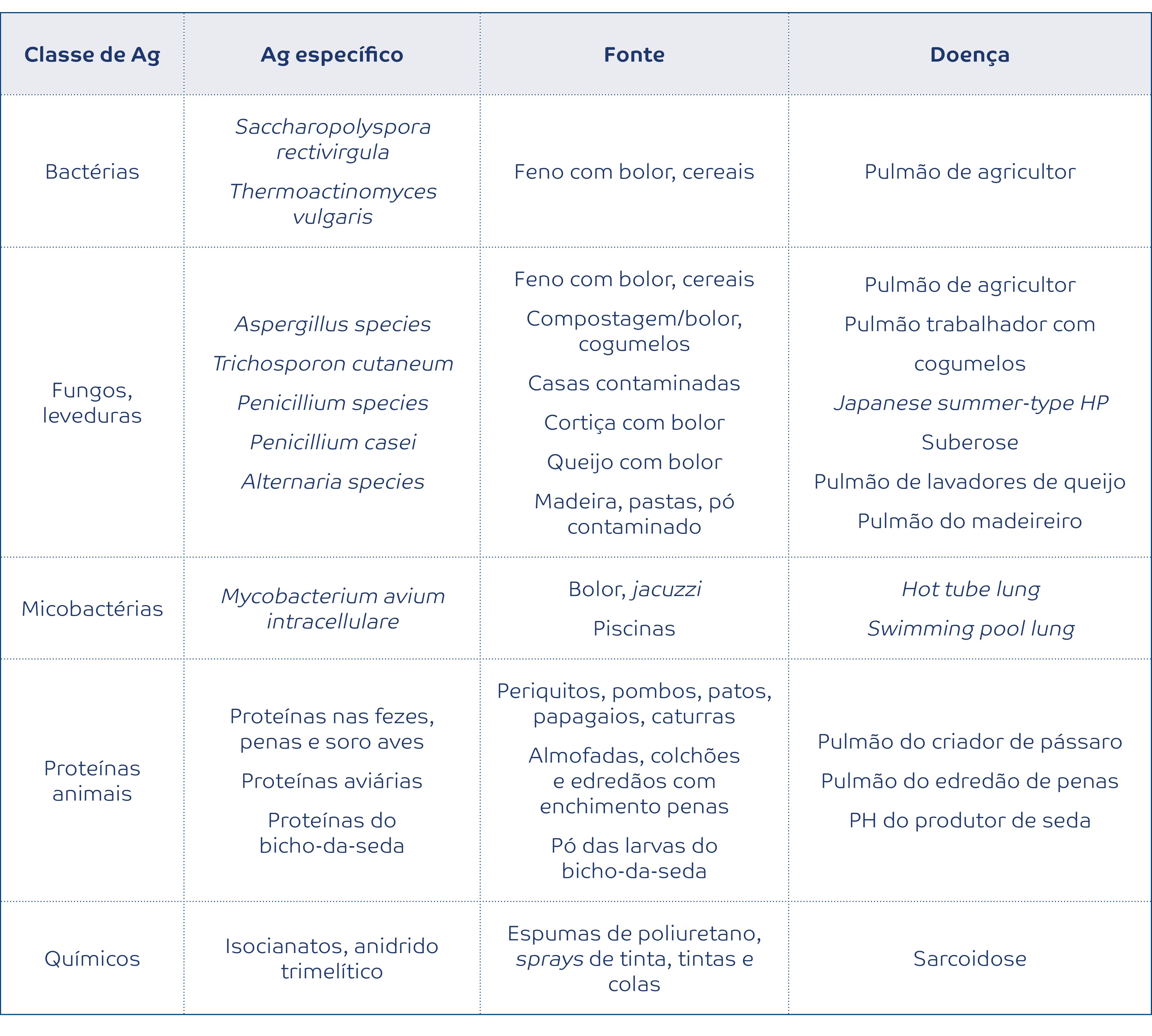 São várias as doenças do interstício pulmonar que podem cursar com um fenótipo progressivo, destacando-se, pela sua frequência, as pneumonias intersticiais idiopáticas, as doenças autoimunes com envolvimento pulmonar, a pneumonite de hipersensibilidade, a sarcoidose e as doenças ocupacionais ou pneumoconioses2